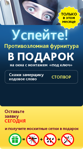 * В цену с установкой «под ключ» входит: подоконник ПВХ шириной до 250мм, отлив 130 мм, доставка, демонтаж старого и монтаж нового окна c форточкой, отделка откосов пластиковыми сэндвич-панелями до 250мм.